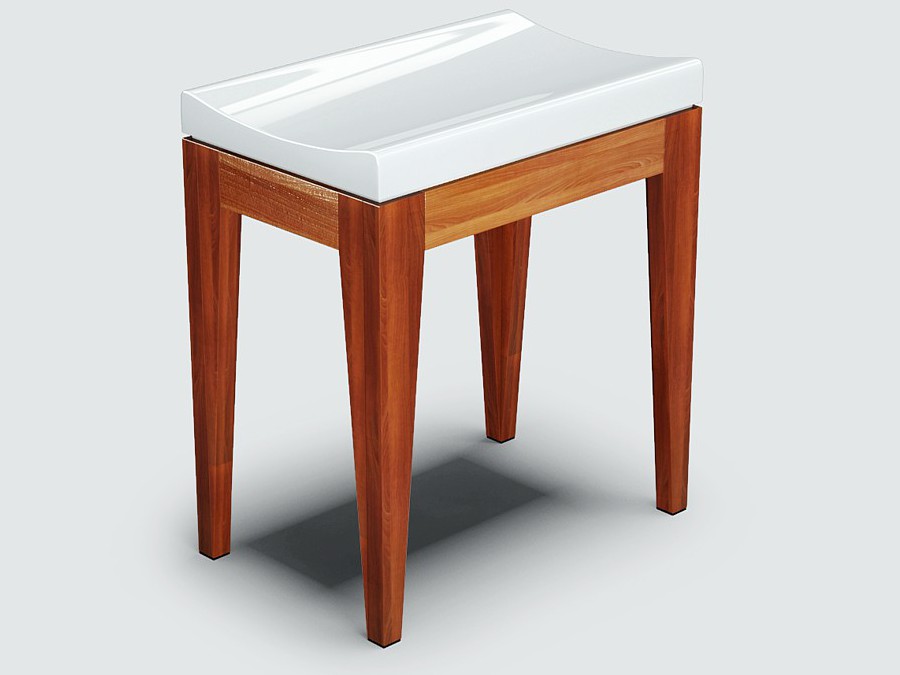 A madeira utilizada é de plantios sustentáveis, da marca LYPTUS. Ela recebe um selador e um verniz protetor sem brilho. Isso dá a ela uma proteção à respingos d’água, mas não a torna à prova d’água.